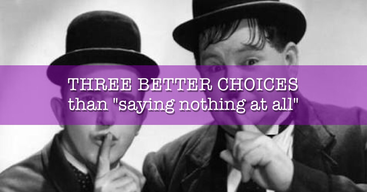 “Not saying anything at all” is a choice to withhold truth. Sure, there are times and places where hearing the truth would be more palatable but the truth is always our friend.