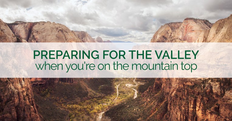 Of course, each of these things can (and must) be done even when we are IN the valley. But the energy and intentionality we invest in our ‘mountain top’ moments can dramatically impact the length and depth of those ‘valley’ experiences.